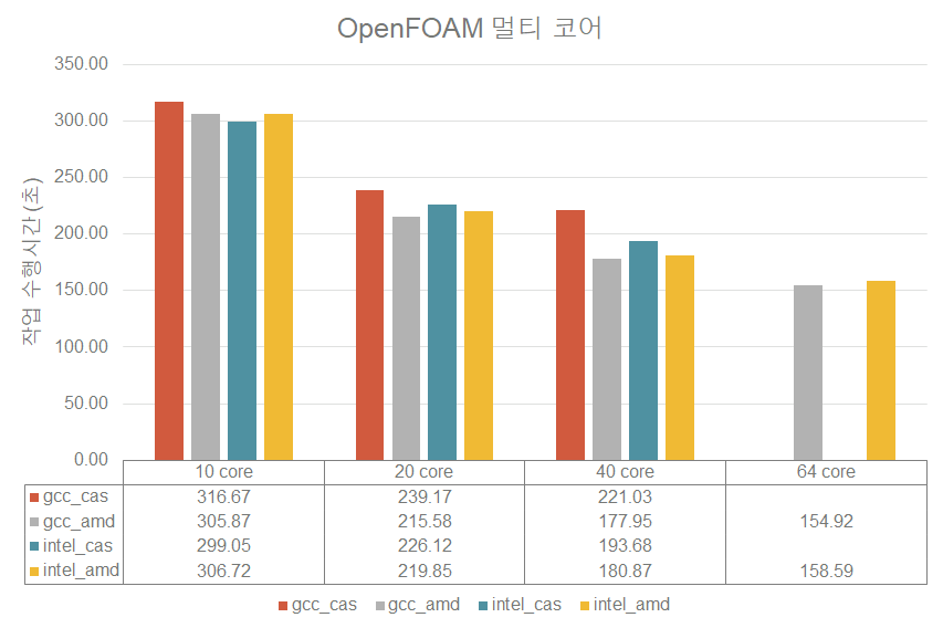 - 20 core 이후부터 gcc, intel 모두 AMD 노드에서 더 좋은 성능을 보여줌